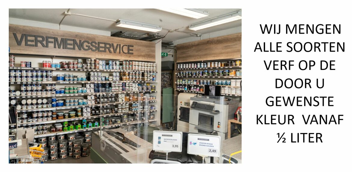 De STADSBOUWMARKT is gespecialiseerd in het mengen van verf in alle door uw gewenste kleur tegen scherpe prijzen. We hebben een uitgebreide kleurenstaal om samen met u de gewenste kleur uit te zoeken.
